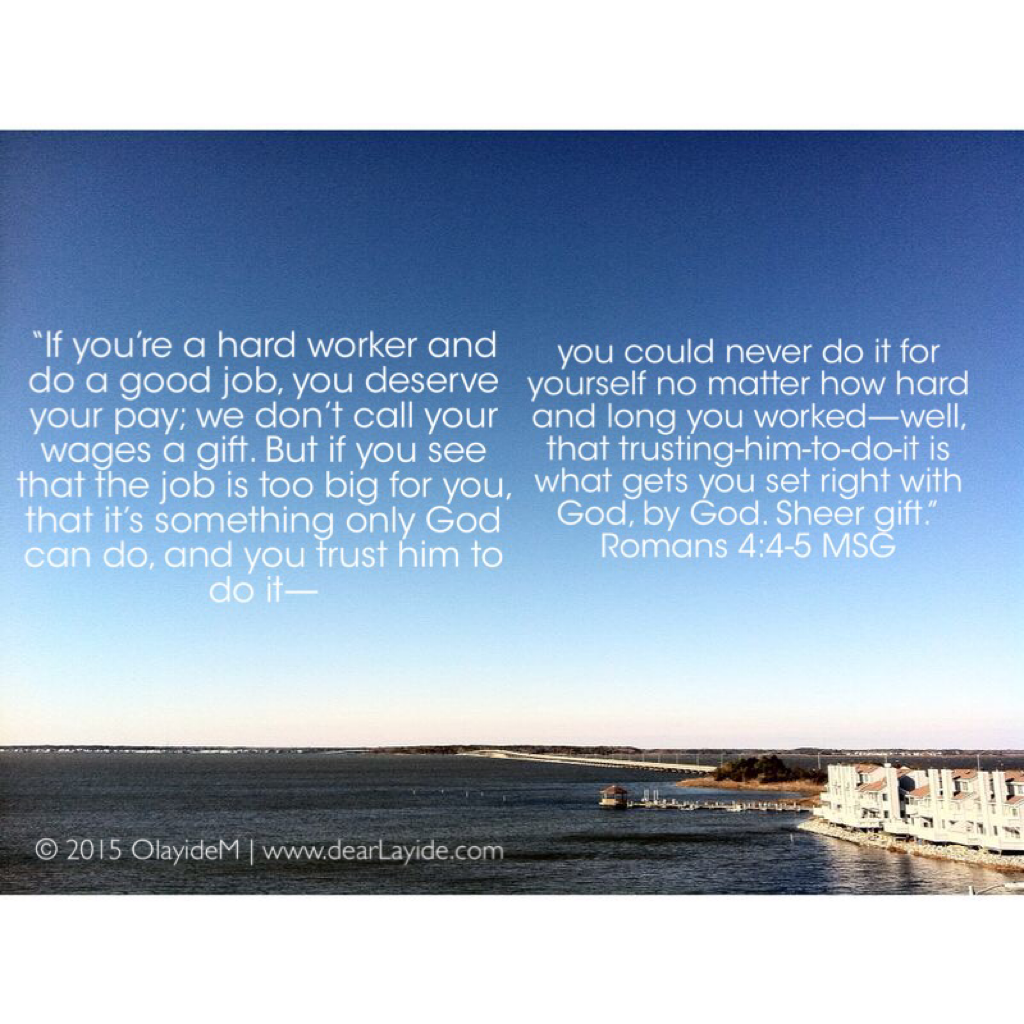 It is faith in Christ that gets every “job” done. For even to wake to a new day is not of my own strength (neither is hitting the snooze button), it’s God’s doing. Every action and lack of it, may appear small, but every “job” is too big for us to accomplish by our own strength.
